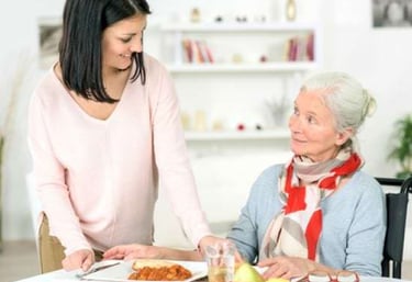 Préparation et aide aux repas, favorisant une alimentation équilibrée et agréable à domicile.